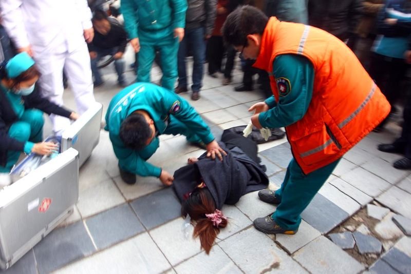 急救人员抢救了几分钟后,宣告她已身亡。下午5时30分许,四周扯上了警戒线,警方说要等刑侦人员到现场取证。她仍躺在冰冷的地上,“但愿她的灵魂能够安息吧。”人群中有人说。