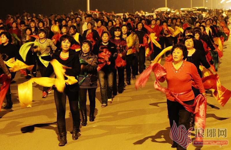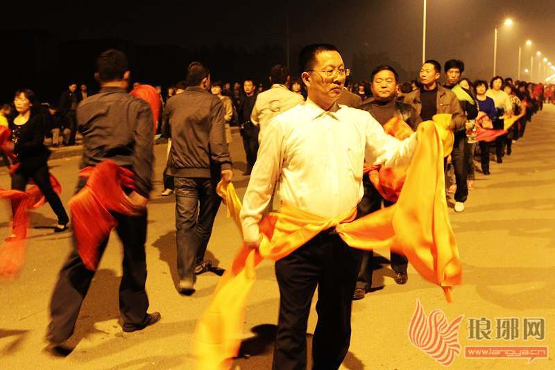 12日晚上,记者从几百米外就听到了欢快的锣鼓声。走近人群,只见数百个村民腰里系着绸布,跟着鼓点扭着欢快的秧歌。“附近王家于埠、孟家于埠、彭家于埠等6个村的村民吃完了饭都喜欢来玩,不仅热闹还能锻炼身体。”一说起这个,周文启特别兴奋。