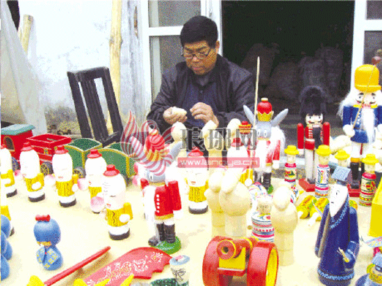 在这样的环境下,樊埝村制作旋木玩具可谓“规模大着呢!”点着煤油灯全家总动员赶点做玩具,大刀一件零售一毛,虎头锤一件零售七分……价格如此便宜,卖得多了赚点小钱,一年下来全家人起码不饿肚子。