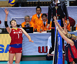 第四局比赛战至2平后波恩和拉尔森连续两次封死杨珺菁的快攻让美国队以4-2超出,中国队用马蕴雯换下杨珺菁加强快攻突破。中国队只有惠若琪的强攻较有威胁,美国队依靠胡尔克的强攻和发球以6-3领先,随后又是胡克尔两次后攻命中帮助美国以8-4领先进入第一次技术暂停。暂停后王一梅的强攻和张磊的反击接连得手,随后徐云丽和惠若琪的扣球也屡有斩获帮助本队将比分迫近到9-10,替补登场的陈丽怡发球造成对手无攻后马蕴雯反击快攻命中使得中国队追至12平。13平后王一梅封死波恩的快攻以及她的两次强攻反击命中让中国队连得三分在第二次技术暂停时以16-13反超。暂停后王一梅的强攻和马蕴雯的快攻相继反击命中使得本队将领先优势扩大到18-13,美国队则依靠波恩的两次快攻和胡克尔的后攻连拿三分将比分差距缩小到16-18,好在王一梅的强攻、徐云丽拦探头成功让本队以21-16领先。关键时刻王一梅四号位重扣得手帮助本队以24-18领先获得局点,胡克尔挽回一个局点后惠若琪强攻下球将比分定格在25-19,中国队将大比分追至2平。