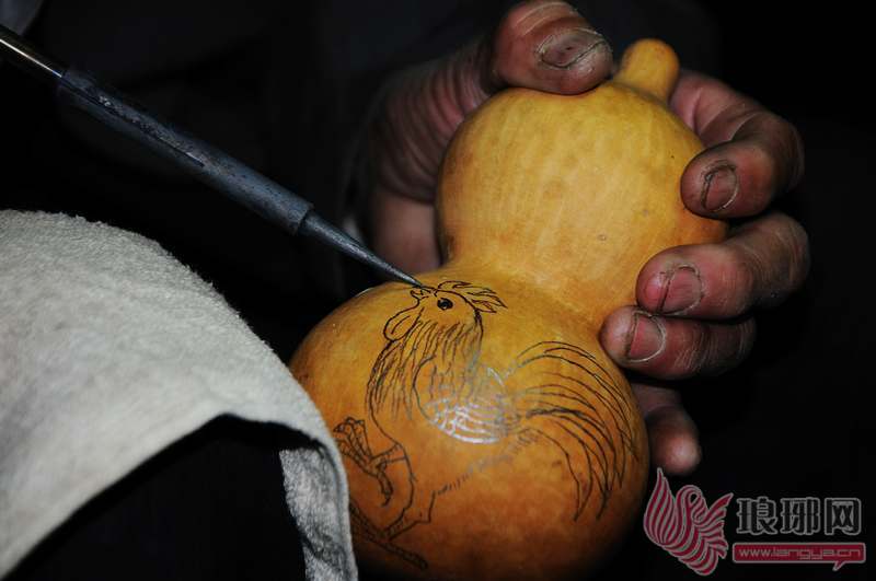 爪子纹路清晰、羽毛错落有致……不到20分钟,邹会启在葫芦上烙了一只活灵活现的公鸡,又烙上“吉祥如意”四个字。“葫芦上烙画,下笔前要了然于胸,胸中有丘壑。在烙画过程中根据灵感再作修改,一幅好的作品才能出来。”邹会启说。