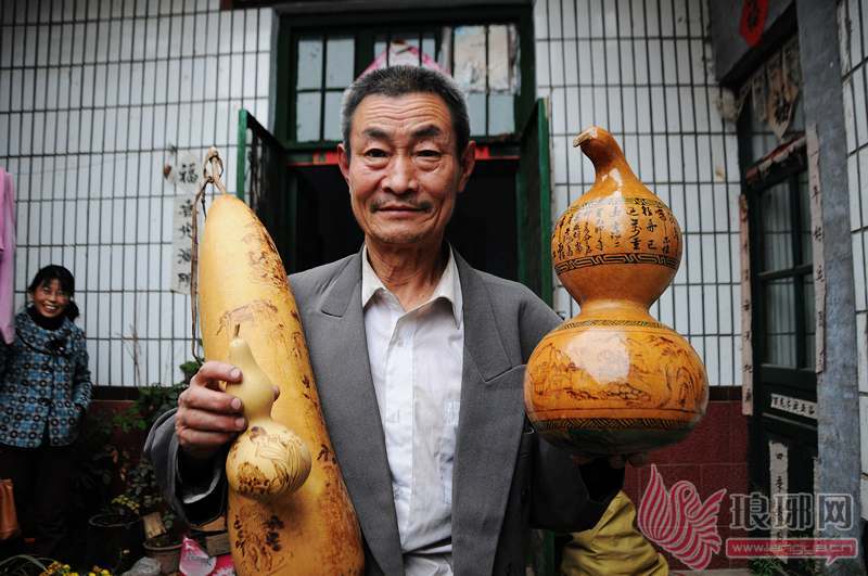 “刚开始时是用钢笔、毛笔在葫芦上绘画,一次偶然的机会,我在报纸上看到,还能用烙笔在葫芦上烙画,这样烙画更易保存,图案不会因为遇水而花掉。”邹会启说,为此,他买了专门烙画的烙笔,开始接触葫芦烙画这门手工艺术。