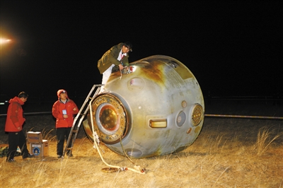 本报讯 (记者仲玉维 王卡拉)昨日19时32分,“神舟八号”飞船返回舱降落于内蒙古四子王旗主着陆场。这标志着“天宫一号”与“神舟八号”交会对接任务圆满成功。中国成为继美、俄后第三个独立完全掌握空间自动交会对接技术的国家。