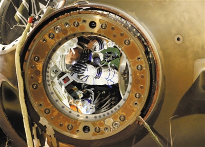 这是从飞船返回舱舱门看到的场景。新华社记者 李刚 摄