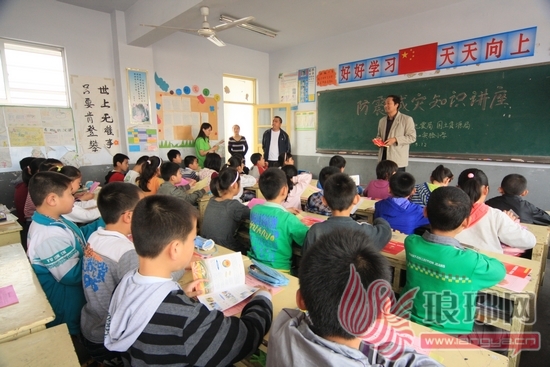 县地震局工作人员在为学生讲解防震知识