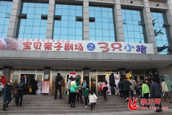 临沂网讯 昨日由济南儿童剧院参演的童话剧《三只小猪》在临沂蒙山沂水大剧院上演。当日演出三场,吸引了大量家长和孩子前来观看。