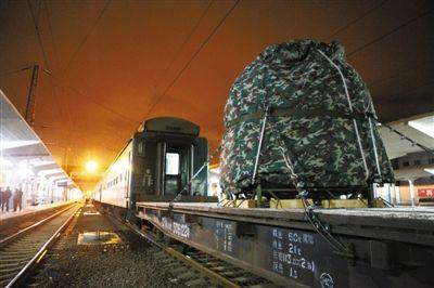 18日夜,搭载神舟八号飞船返回舱的专列在转运途中。
