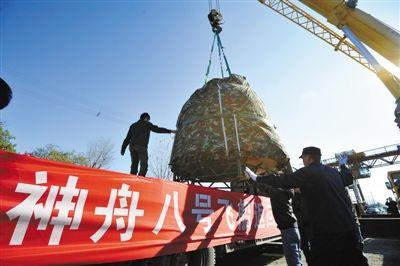 18日,神舟八号飞船在转运至呼和浩特的途中。