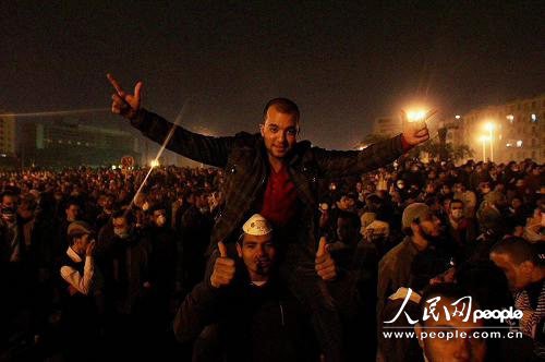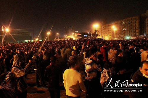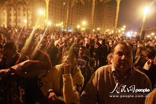 开罗时间21日夜里,解放广场依旧聚集了数万示威者。