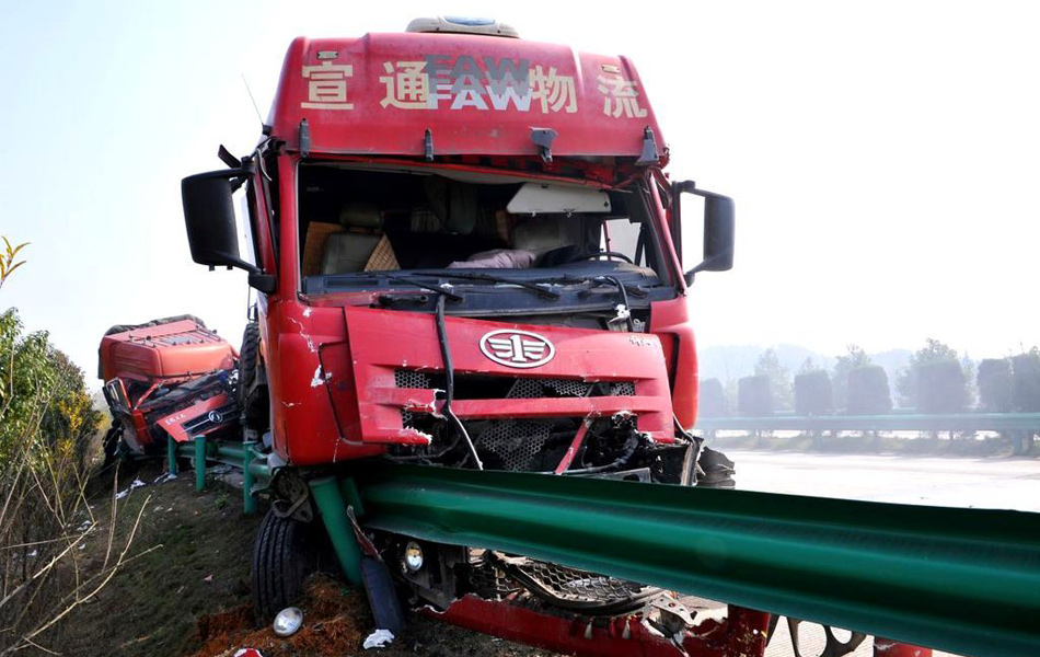 沪昆高速20余辆车因大雾追尾 现场惨烈