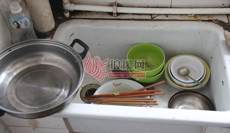 由于停水,居民家中用过的碗筷只能用纸擦一下后继续使用。