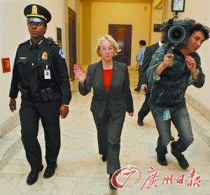 11月21日,在美国首都华盛顿的国会山,美国国会削减赤字特别委员会(“超级委员会”)民主党参议员帕蒂·默里(中)在与该委员会民主与共和两党代表开完会后离开。