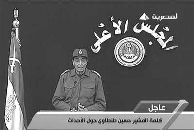 22日晚,埃及武装部队最高委员会主席坦塔维发表电视讲话。图/东方IC