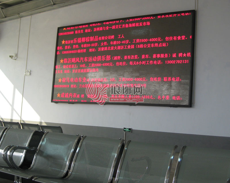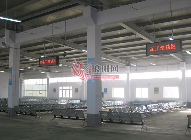 服务大厅内设有18平方米的LED电子显示屏,滚动播放各类用工求职信息。