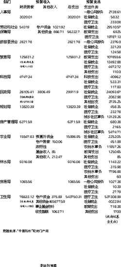 这37个部门中,大多数在预算中列出了2011年度的收入来源和支出项目。支出包括一般公共服务支出、社会保障支出、医疗卫生支出等,内容普遍不多。最“丰富”的,用A4纸单面打印也不超过5张,有的用一二张纸就能打印出来。