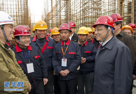 李克强在儒苑保障房小区施工现场向施工单位详细了解如何保证工程质量