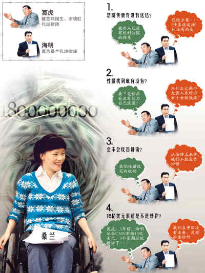 质疑声更是到处都是:13年之后才告,为什么?索赔18亿,还是美金。简直是奇闻!桑兰为什么不去告中国体操协会?桑兰的经纪人黄健是个什么人?桑兰不会是被利用了吧?