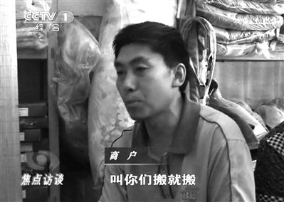 事先既没有征求这些商户的意见,也没有给他们安置新的门面,只有这样一个简单的通知,几十家商铺就得在两天内全部搬走,面对这一突如其来的变故,商户们感到非常诧异。一些商户告诉记者,政府工作人员说,搬到哪儿政府不管,让他们自己想办法。