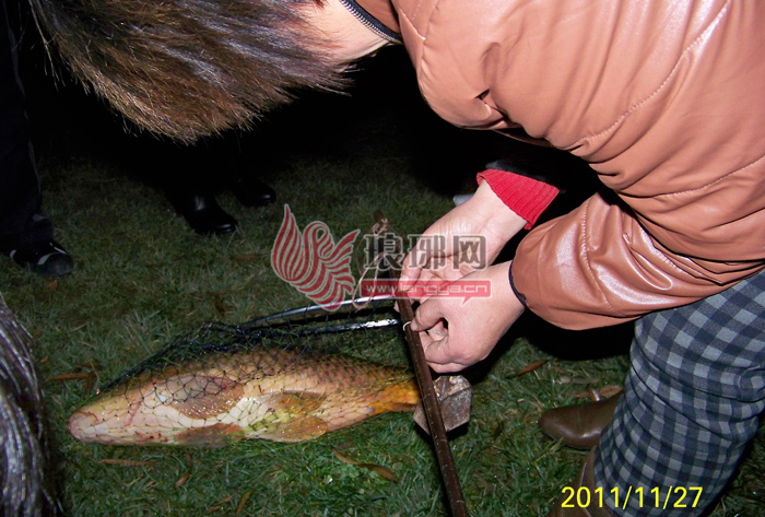 当时7点左右,平时常在此水域垂钓的魏先生和往常一样,在此打上几杆,十几杆后上了几尾小鲫鱼,再一杆下去后,等了少许会儿,突然浮标猛沉,手中的杆力道非常大,“肯定遇上大鱼了!”有20年钓龄的魏先生想,由于魏先生用的是6.3米的鲤鱼杆,但是没想到能上这么大的鱼,只用了0.8的主线,0.5的子线。