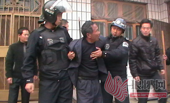 看到民警不但没有离开反而越聚越多,段某更加嚣张。他在叫骂中向民警举起了菜刀,并扬言谁要靠近他,他就砍死谁!鉴于此情况,参战民警决定对段某采取强制措施。就在段某回头之际,两名民警迅速用警用钢叉将段某逼到墙角,并将段某持刀的右手连同身体牢牢抵在墙壁上,其余人员立即冲上去,按照既定的方案对段某实施控制。