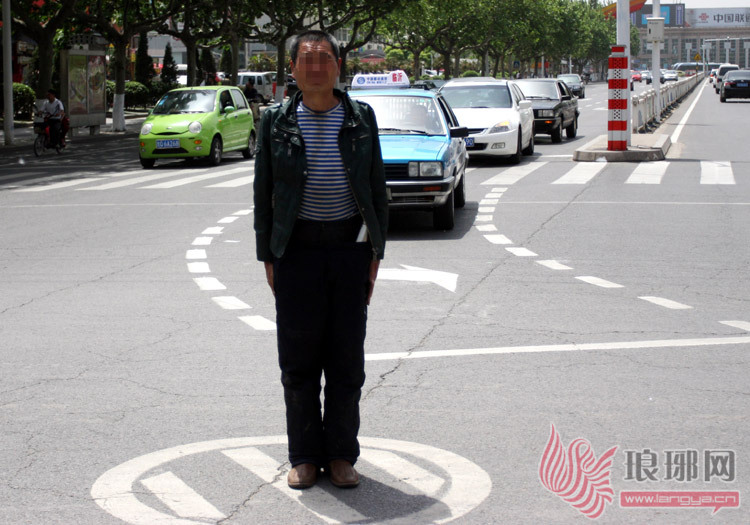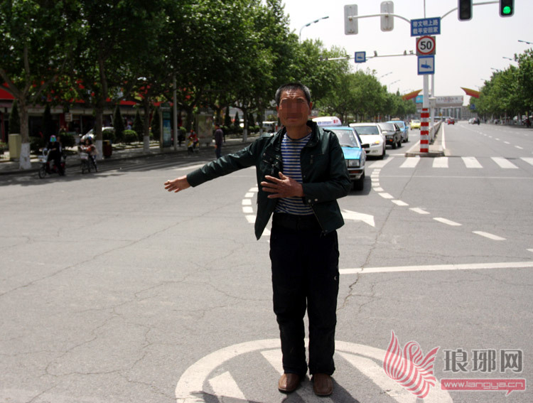 5月12日上午,在市区沂蒙路与金源路交会路口处,一名中年男子突然从路边冲进路中央的车流当中,当起了“指挥交通”的角色。
