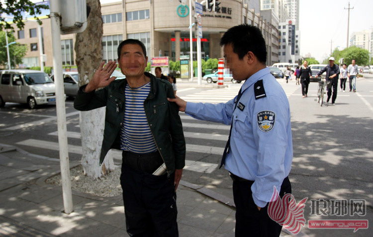 见到有警车来,该男子马上“立正”。