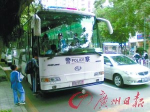 昨天中午12时许,记者赶到深圳市北斗小学的门口。此时正是学校师生午休的时间,校门口人很少。一个收废品的阿姨告诉记者,北斗小学门口每天早中晚都会有一辆很大的警车接送学生,“就停在那边,”阿姨指着校门口的右边,“每天来得都很准时。”一个卖牛奶的年轻女子也向记者证实了同样的情况,称这辆车每天接送的学生有好几十人。