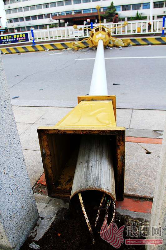 在路南侧经营渔具的老板张女士告诉记者,当时她亲眼看到了路灯倒下,两名骑电动车的人刚巧在这时路过,其中一人的电动车被倒下的路灯碰坏,两个行人都没有受伤。“还好只是碰坏了电动车,要是落下来砸着人,事儿就大了。”张女士回想起当时的一幕觉得心有余悸。