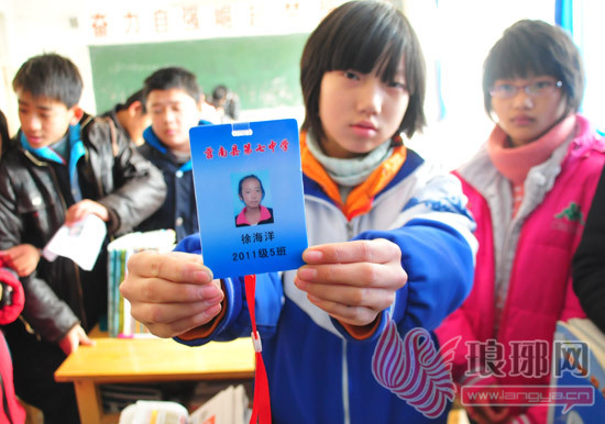 徐海洋的同学向记者展示海洋的学生证。罗志强摄影