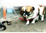 昨日,南岸区,蔡女士家里,大蛇与狗狗对峙。 见习记者 王海 摄