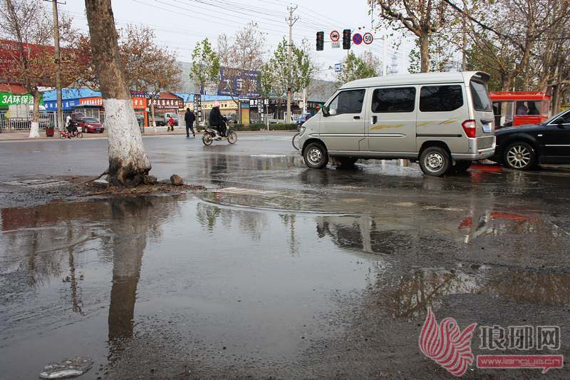 2日下午,记者来到王庄路与解放路交会处。记者看到路口南侧有一面积约30平方米的积水,最深处达七八厘米。过往车辆驶过时,车轮溅起水花。记者注意到,在路中央从北至南有一长50厘米的缝隙,从里面向外一直冒清水。记者试了试水温,冒出来的水并不热。