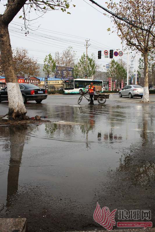 据负责此路段的环卫工人介绍,此路段有积水已有一周的时间,估计是自来水管道损坏了。此处积水给道路清扫和过往的行人、车辆带来很大不便。