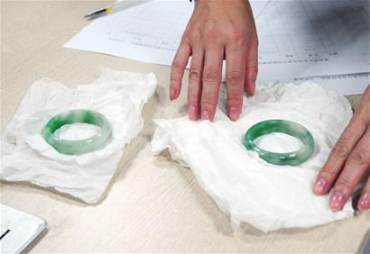 “昨晚6点多,在荣成一家单位旁将苑某抓获。”市公安局刑警支队二大队队长姜巍介绍,当时苑某刚下班不久,民警抓捕她的时候,苑某手上就戴着一枚翠绿的手镯。“这枚手镯就是苑某当时从百盛商场劫走的。”姜巍介绍,民警随后根据苑某交代,在她家中找到另外一枚手镯,将两枚被劫手镯全部缴获。