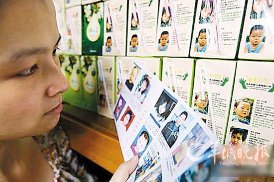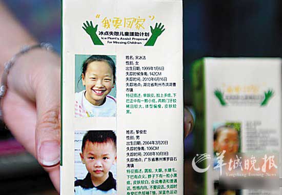 包装盒印有失踪儿童图片和信息