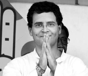 5月11日,印度执政党国大党总书记拉胡尔·甘地被捕后向媒体示意。