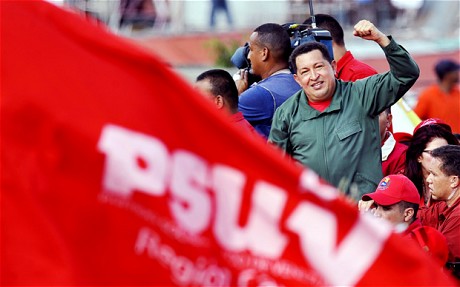 据美国媒体报道,委内瑞拉总统查韦斯5月15日在该国国家电视台上向哥伦比亚女歌手夏奇拉致谢,后者向他赠送了一把附有亲笔签名的红色电吉他。