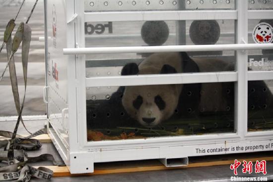 12月4日,两只中国大熊猫“甜甜”与“阳光”搭乘“联邦熊猫快递号”飞机前往英国。搭乘本次“联邦熊猫快递号”的“甜甜”和“阳光”被舒适地安置在两个特制大型集装箱内,确保它们能够自由活动,并透过透明的树脂玻璃观察周围的情况。来自爱丁堡动物园与碧峰峡熊猫基地的一名兽医与两位动物保护专家随行,全程照顾两只大熊猫并密切监测它们的情况。
