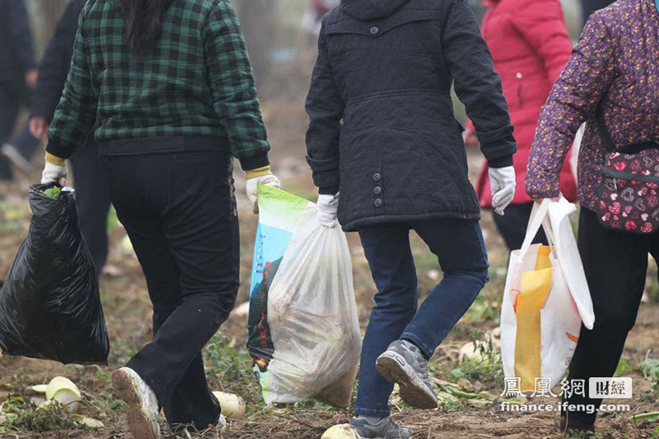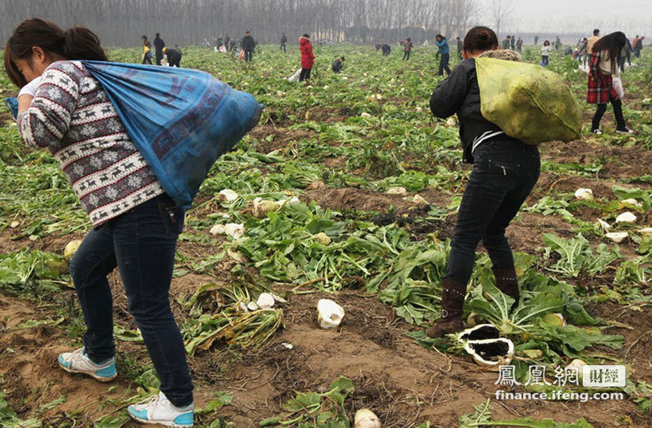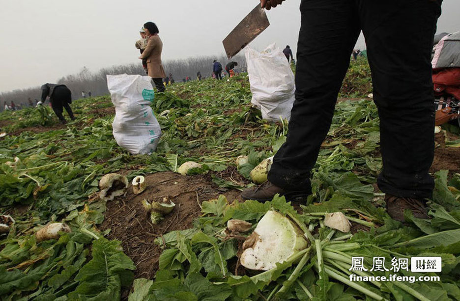 2011年11月25日,河南郑州,滑县农民韩岗的80多亩萝卜滞销。他决定免费赠送给市民食用。媒体刊登消息后,引来三万人拔萝卜,菜农的萝卜被拔光了,种的红薯竟然也被偷挖走2万斤。几天来,韩岗家损失了数万元。村民举家上阵拔萝卜。