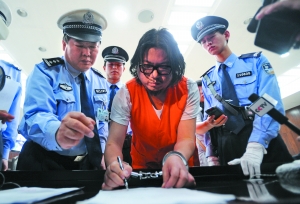 昨日,东城区法院,高晓松在处罚决定书上签字。当日,东城区交通支队前往法院,对高晓松宣读吊销驾照并处罚1000元的行政处罚决定书。高晓松表示没有意见。今日下午,高晓松醉驾案将开审。记者 杨杰 摄