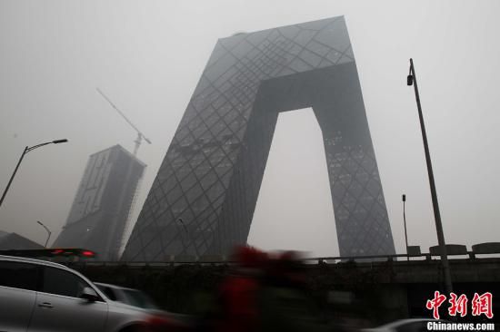 12月5日,中央气象台再次发布大雾蓝色预警,华北、江淮、黄淮等地有轻雾,局部能见度不足200米。图为雾中的央视大楼新址