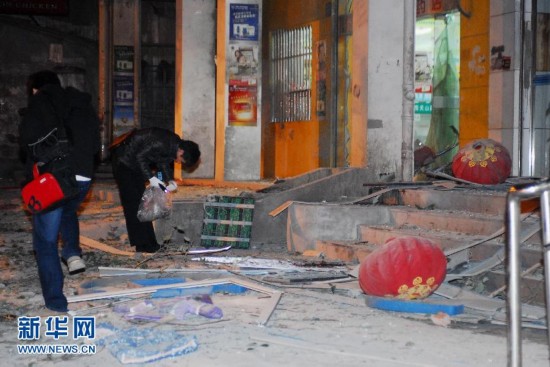 12月1日下午,武汉市雄楚大街关山中学旁的一家银行发生爆炸。目击者称现场有6名伤者躺在地上。这是爆炸现场照片(手机拍摄)。新华社发(网友贺祺h 摄)