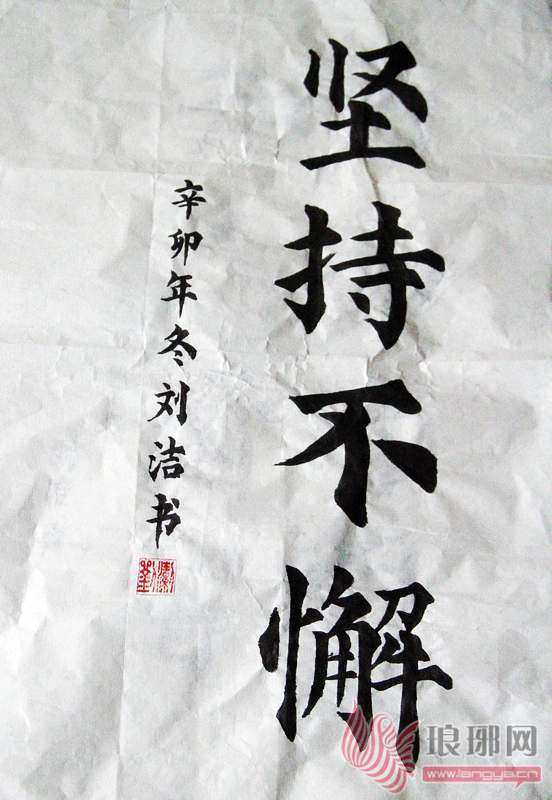 在采访时,刘洁拿起毛笔,认真了写下了“感恩”两个字。刘洁说,学校的老师、同学对她都非常好,但自己最想感激的人是妈妈。“如果没有妈妈,就没有现在的自己。”而说起自己的理想,她思考了一会说,“我最喜欢英语,以后想做一名大学老师。