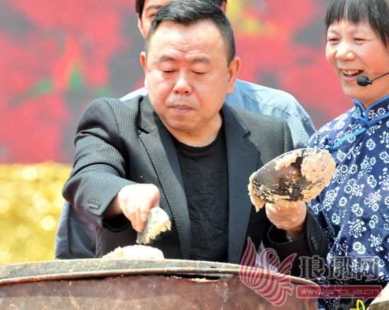 16日,第四届诸葛亮文化旅游节在沂南开幕,在开幕式演出现场,红歌唱响沂蒙,一曲曲耳熟能详的歌曲唤起观众的热情。著名笑星潘长江不仅大声称赞煎饼好吃,还和女儿潘阳现场学起了烙煎饼,经过几分钟的观摩学习,潘长江亲手烙成了一张煎饼。