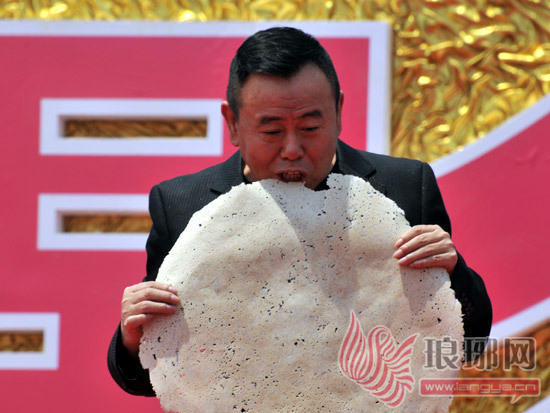 潘长江亲手烙成了一张煎饼,尽管手被烫了一下,但他仍大口咬着自己烙好的煎饼,并戏称回北京后要开一家煎饼店。