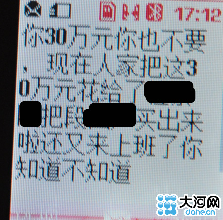 事后有同事告诉她,一开始想赔你30万私了此事,你一直不答应,现在人家把钱花到了活动此事上,段已经回来正常上班了。娜娜让记者看了这则短信。