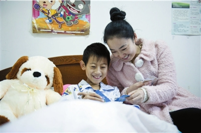 阜外心血管医院的病房里,崔澜馨给小患者带来她喜欢的故事书,与她一起做调皮的表情和动作。