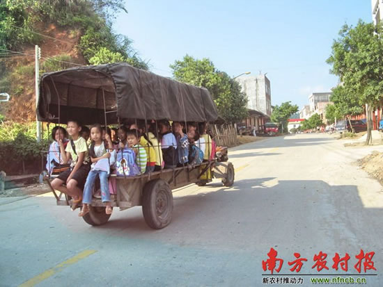 司前中学附近的一位店主告诉南方农村报记者,一些距学校较远的农村学生家长一般会以村为单位联合雇拖拉机接孩子。“每逢周末放假,都会有几辆拖拉机来接学生。”她说,从司前中学到附近的甘太村,每人单程“车费”2元,“但最近抓得很严,没有拖拉机敢来拉学生了。”