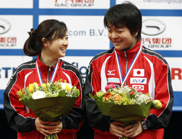 就在世乒赛前两个月,福原爱的祖国日本遭受了空前的大地震,她和她的队友们是带着巨大的悲痛来参加本次比赛,而她本人也是希望能用奖牌振奋同胞的士气。不过除了混双成功杀入四强之外,其他的女单和女双纷纷提前出局,无缘奖牌。