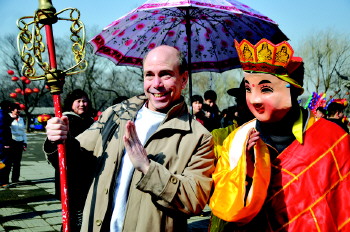 入冬以来,临沂国际影视城恢复了部分拍摄场景,让游客感受影视的制作过程。今年以来,该景区共接待海内外游客82万人次。图为12月8日,一名来自美国的游客正在影视城内游览。