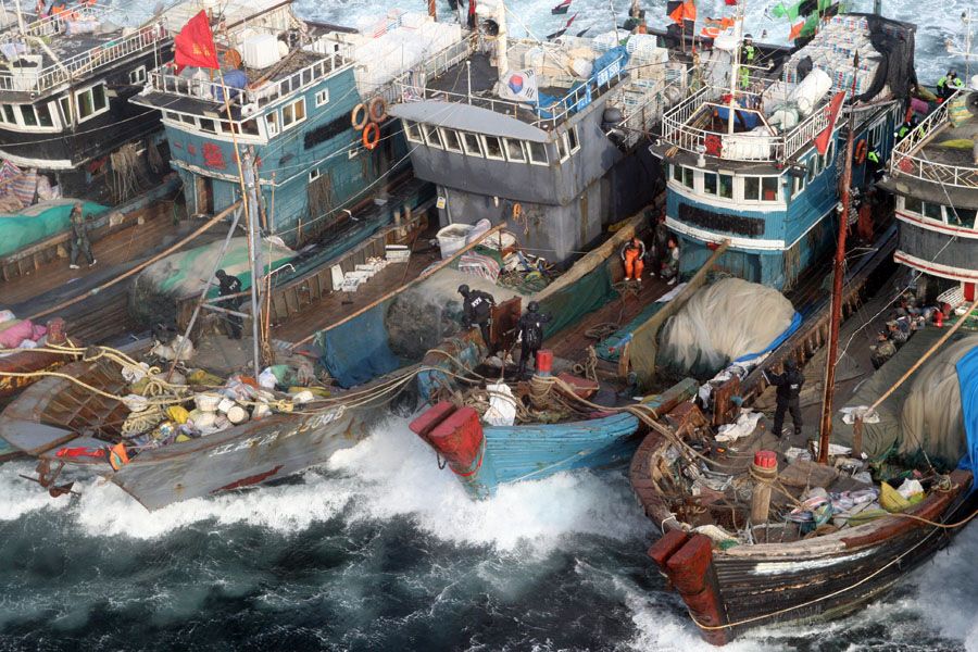 据韩联社17日报道,16日下午,韩国海警至少抓获12艘船身捆绑在一起的中国渔船,这是韩国海警首次集体抓获中国渔船。与此同时,韩国主要媒体17日口径一致地开始大幅报道中国渔船的“非法性”。韩国《朝鲜日报》题为“动用直升机和特种作战部队,中国渔船束手就擒”的报道称,韩国海警在这次对中国渔船的打击中,不仅出动大型海军舰艇、直升机、快艇和特战队员,还动用对付索马里海盗的特战装备。
